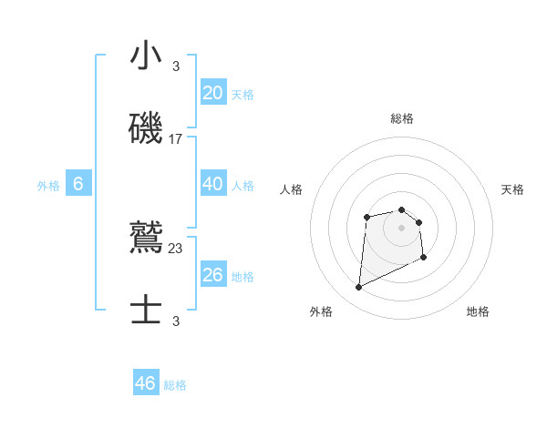 小磯 鷲士さんを姓名の画数から五運を鑑定
