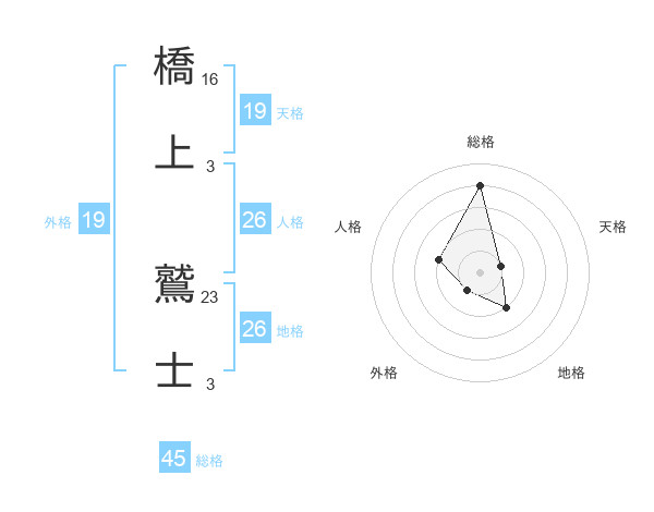 橋上 鷲士さんを姓名の画数から五運を鑑定