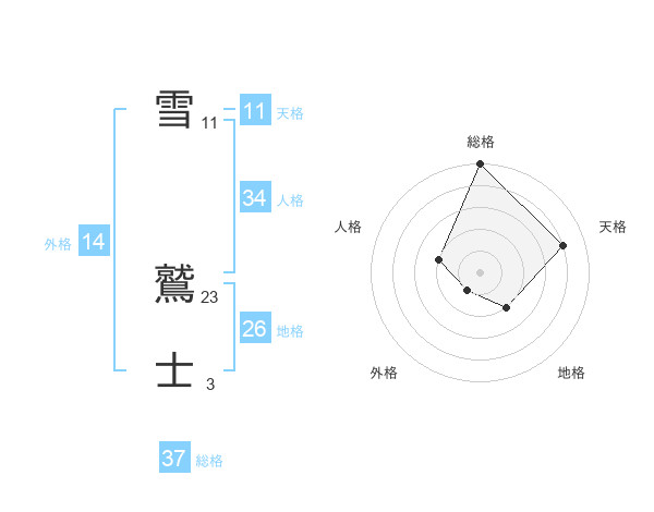 雪 鷲士さんの総格は37画の5点!