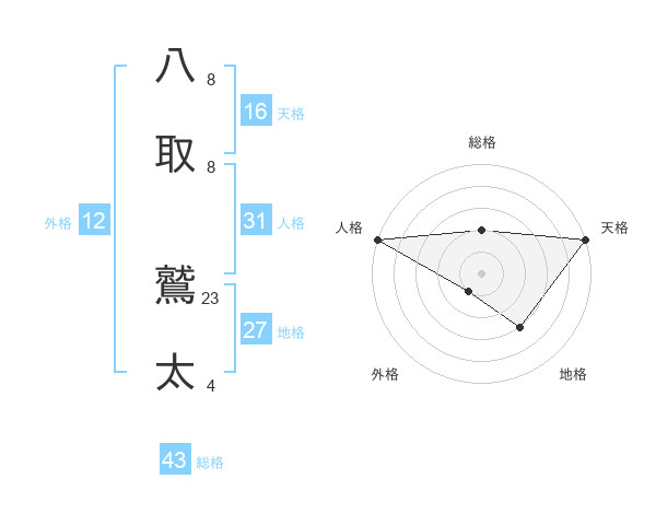 八取 鷲太さんを姓名の画数から五運を鑑定