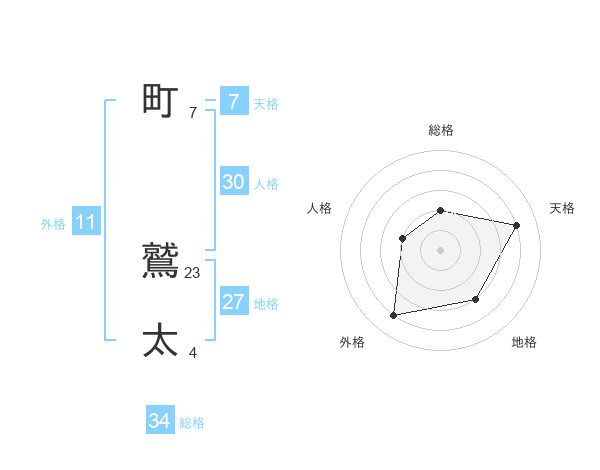 町 鷲太さんの総格は34画の2点!