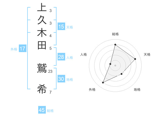 上久木田 鷲希さんを姓名の画数から五運を鑑定