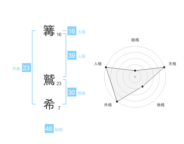 篝 鷲希さんを姓名の画数から五運を鑑定