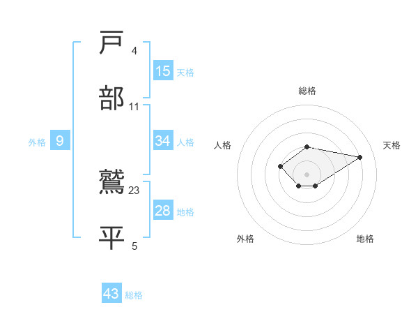 戸部 鷲平さんを姓名の画数から五運を鑑定
