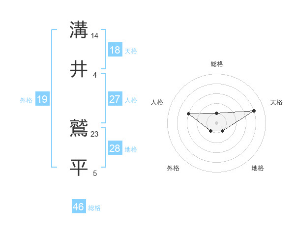 溝井 鷲平さんの総格は46画の1点!