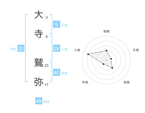 大寺 鷲弥さんを姓名の画数から五運を鑑定