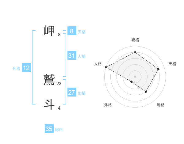岬 鷲斗さんの総格は35画の4点!