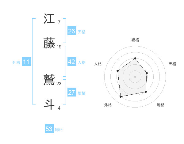 江藤 鷲斗さんの総格は53画の3点!