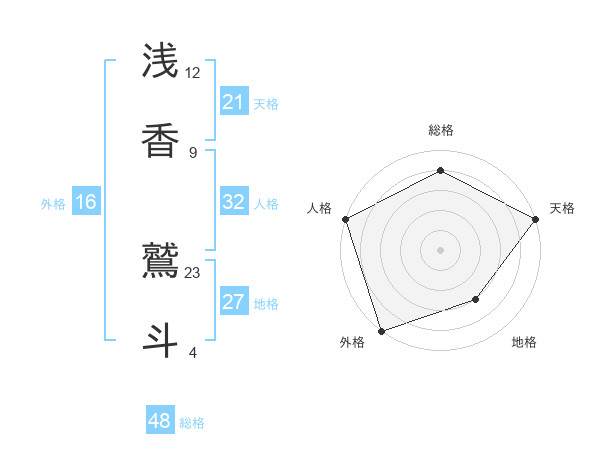 浅香 鷲斗さんの総格は48画の4点!