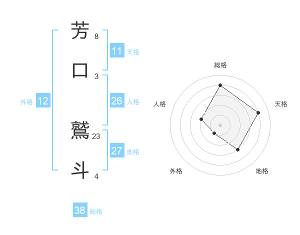 芳口 鷲斗さんを姓名の画数から五運を鑑定