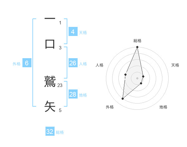 一口 鷲矢さんの総格は32画の5点!