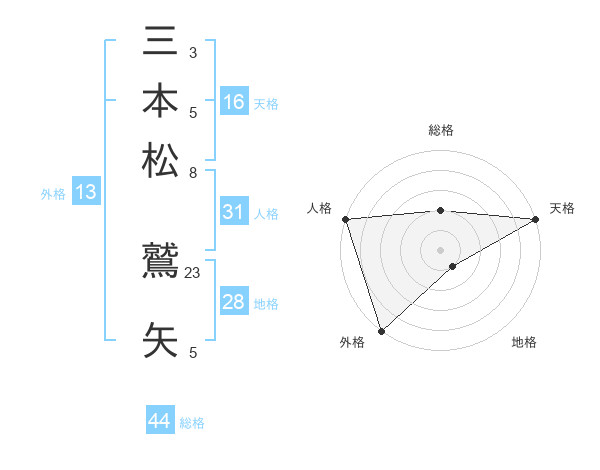 三本松 鷲矢さんを姓名の画数から五運を鑑定