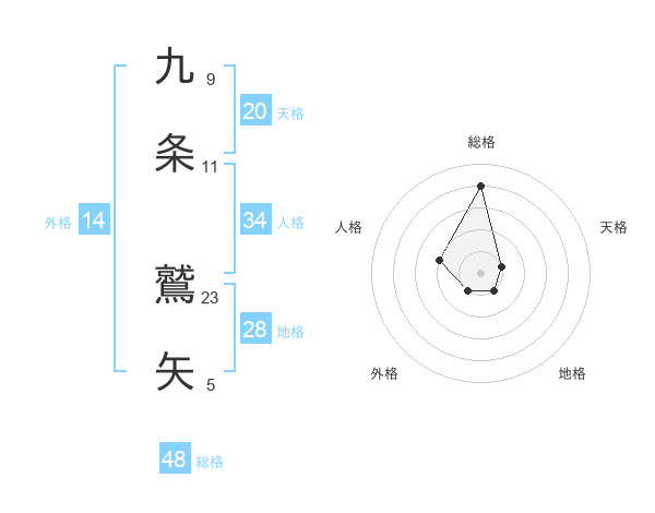 九条 鷲矢さんを姓名の画数から五運を鑑定