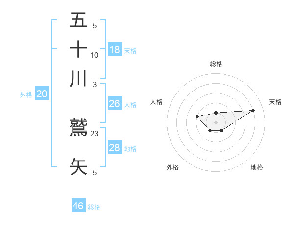 五十川 鷲矢さんを姓名の画数から五運を鑑定