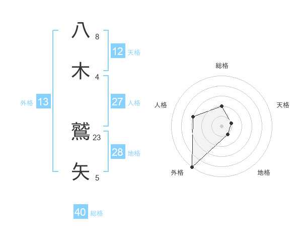 八木 鷲矢さんの外格は13画の5点!
