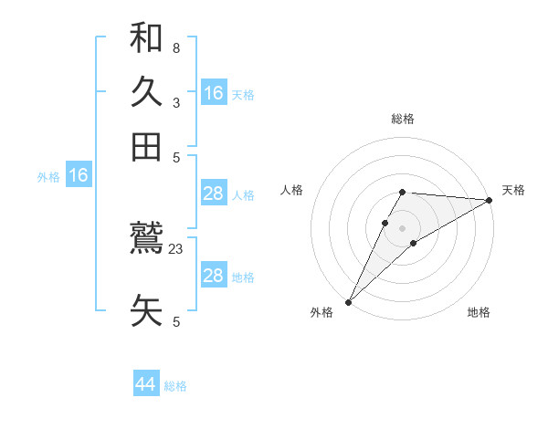 和久田 鷲矢さんを姓名の画数から五運を鑑定