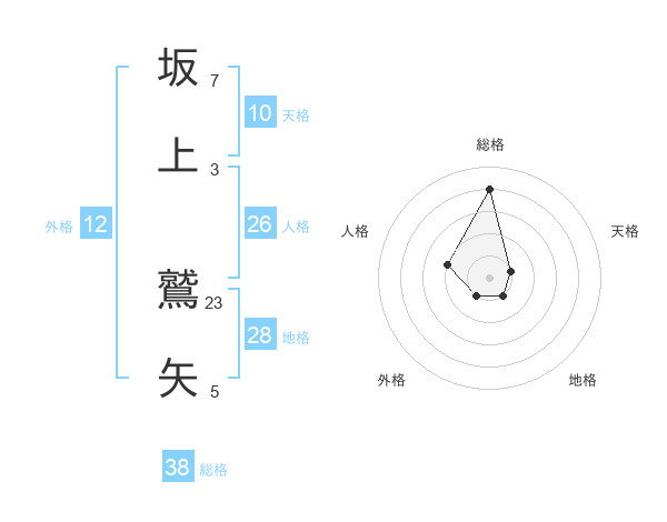 坂上 鷲矢さんを姓名の画数から五運を鑑定