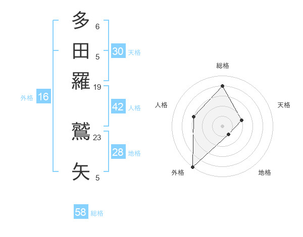 多田羅 鷲矢さんを姓名の画数から五運を鑑定