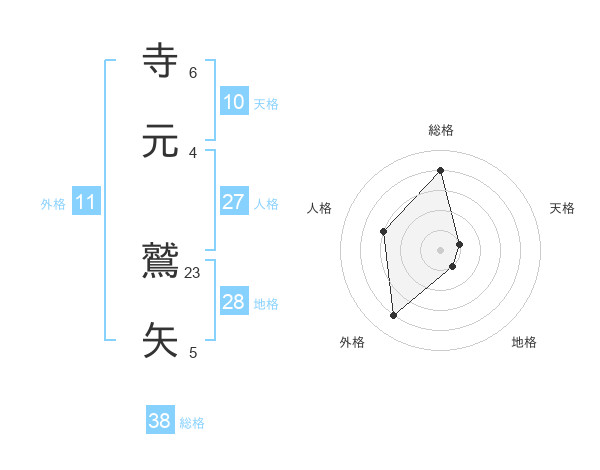 寺元 鷲矢さんを姓名の画数から五運を鑑定