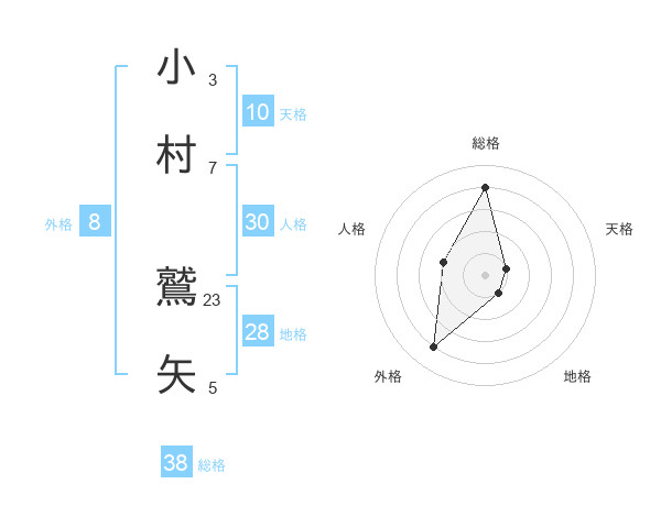小村 鷲矢さんの総格は38画の4点!