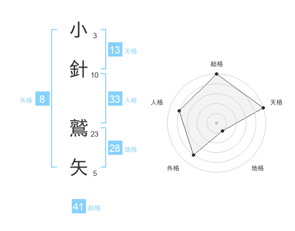 小針 鷲矢さんを姓名の画数から五運を鑑定