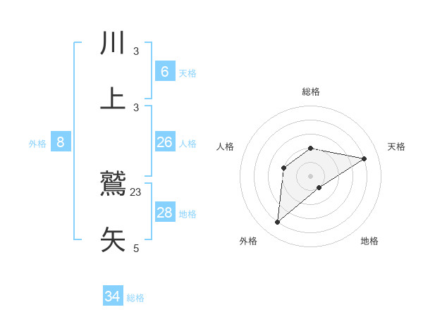 川上 鷲矢さんを姓名の画数から五運を鑑定