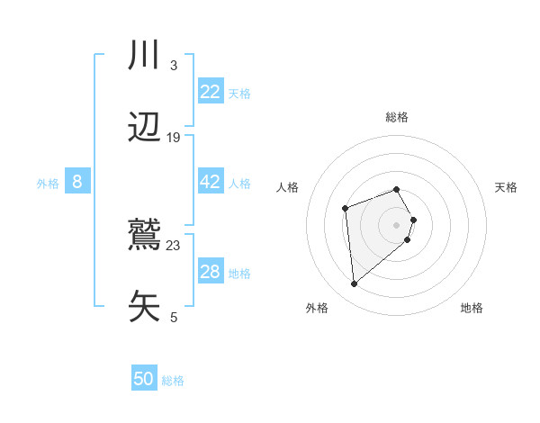 川辺 鷲矢さんの総格は50画の2点!