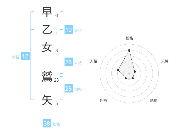 早乙女 鷲矢さんを姓名の画数から五運を鑑定
