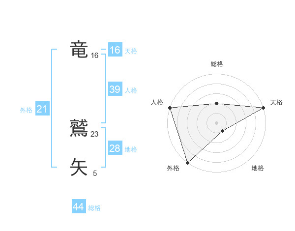 竜 鷲矢さんの外格は21画の5点!