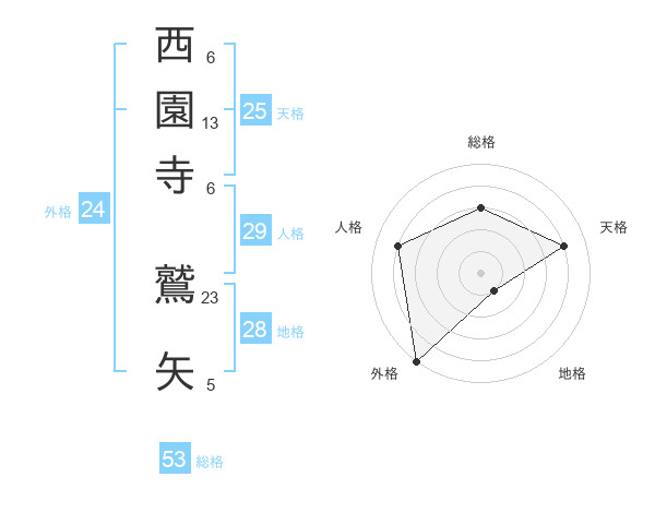 西園寺 鷲矢さんの総格は53画の3点!