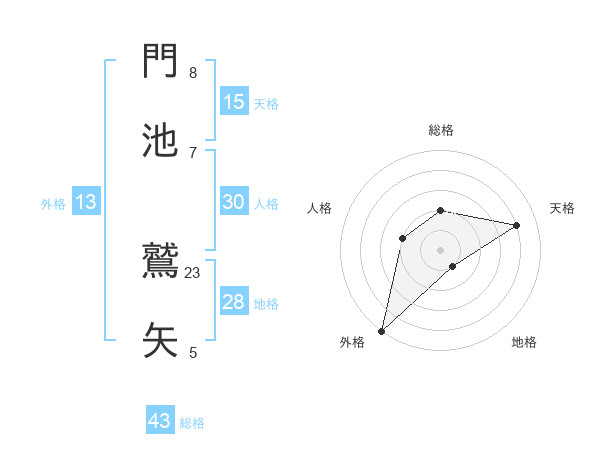 門池 鷲矢さんを姓名の画数から五運を鑑定