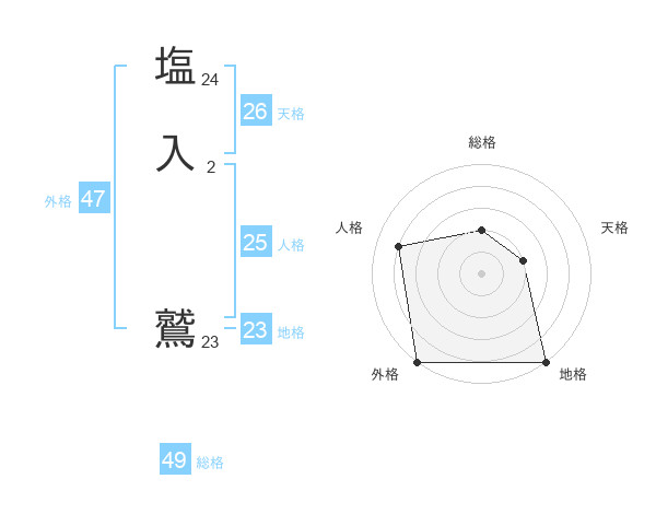 塩入 鷲さんを姓名の画数から五運を鑑定