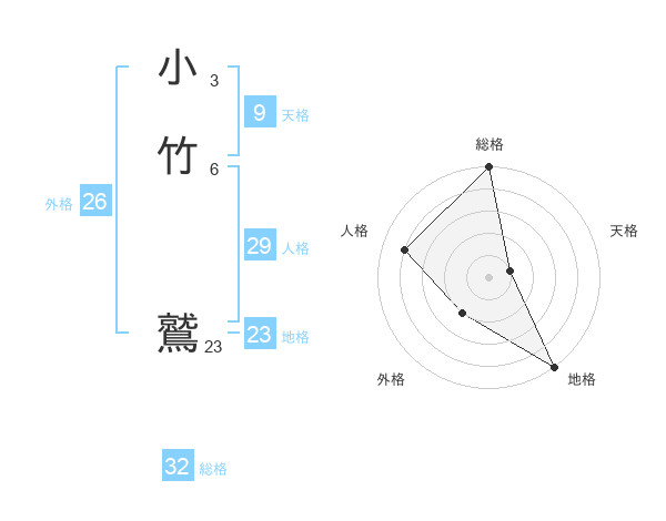 小竹 鷲さんの総格は32画の5点!