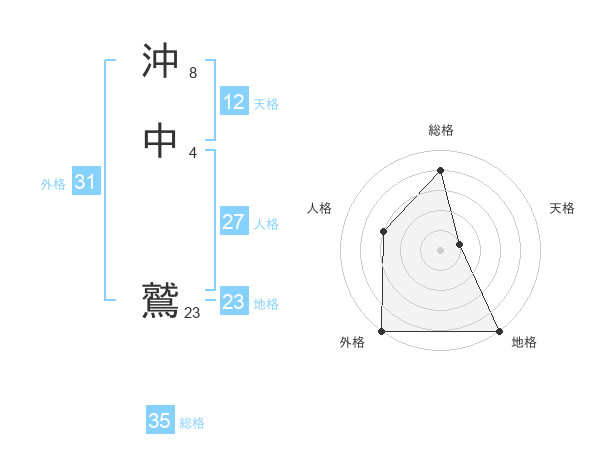 沖中 鷲さんの総格は35画の4点!