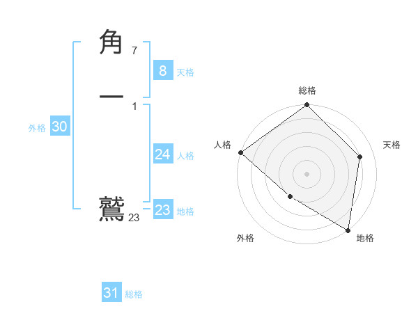 角一 鷲さんの総格は31画の5点!