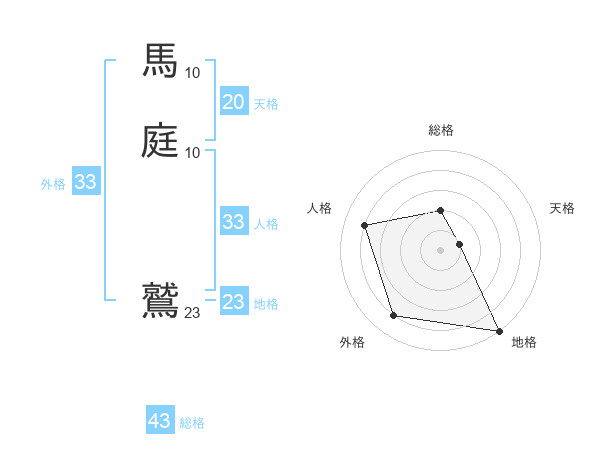 馬庭 鷲さんを姓名の画数から五運を鑑定