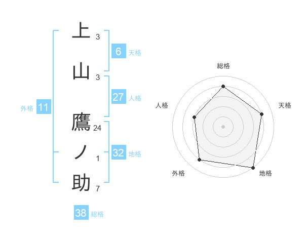 上山 鷹ノ助さんを姓名の画数から五運を鑑定
