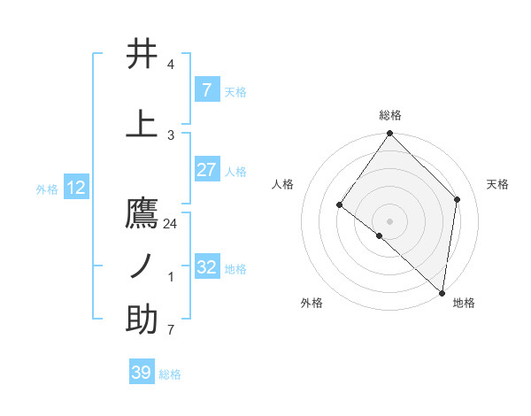 井上 鷹ノ助さんを姓名の画数から五運を鑑定