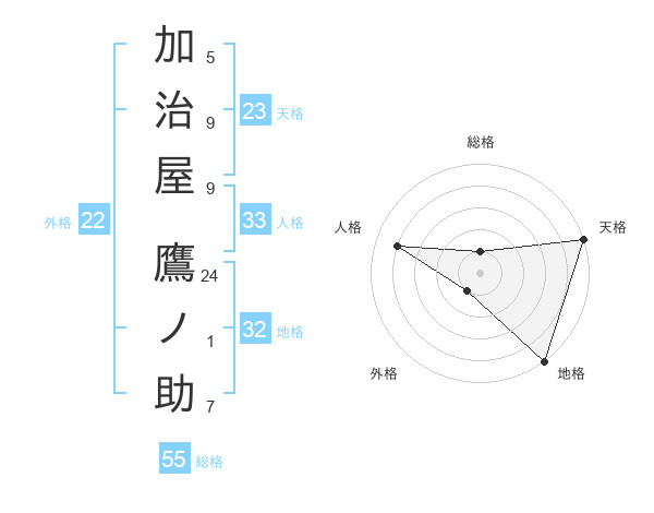 加治屋 鷹ノ助さんを姓名の画数から五運を鑑定