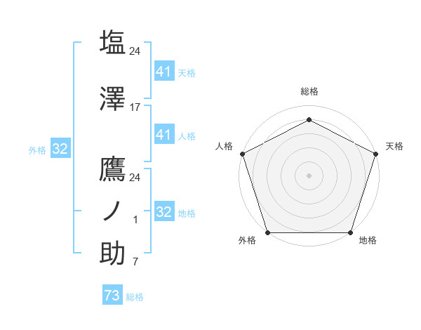 塩澤 鷹ノ助さんの総格は73画の4点!