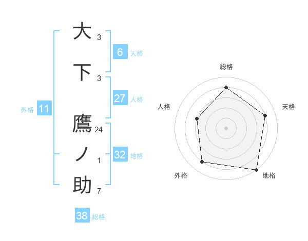 大下 鷹ノ助さんを姓名の画数から五運を鑑定