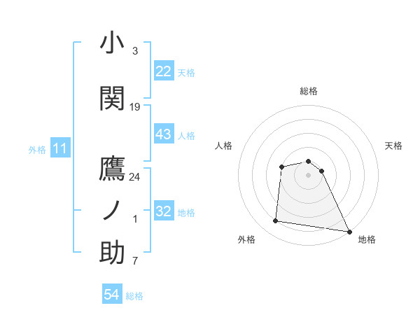 小関 鷹ノ助さんを姓名の画数から五運を鑑定