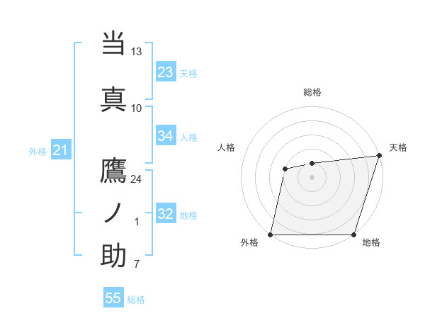 当真 鷹ノ助さんの天格は23画の5点!