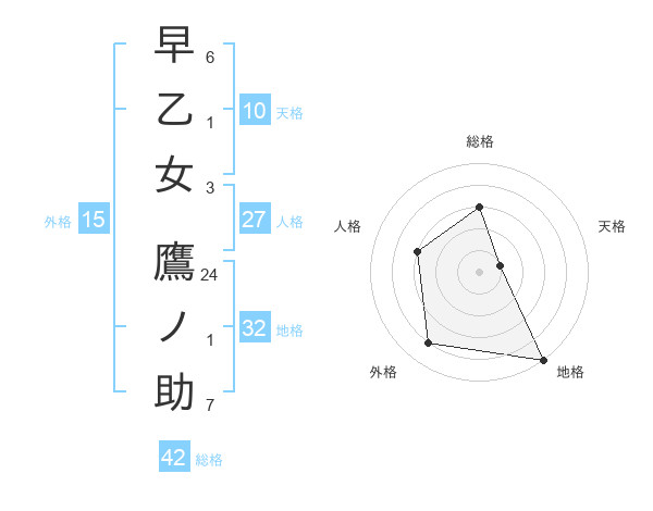 早乙女 鷹ノ助さんの外格は15画の4点!