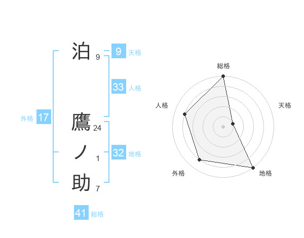 泊 鷹ノ助さんの総格は41画の5点