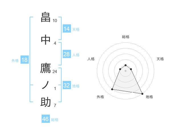 畠中 鷹ノ助さんを姓名の画数から五運を鑑定