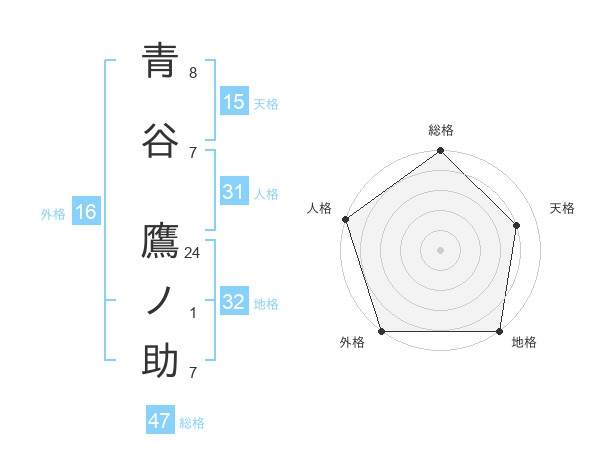 青谷 鷹ノ助さんを姓名の画数から五運を鑑定