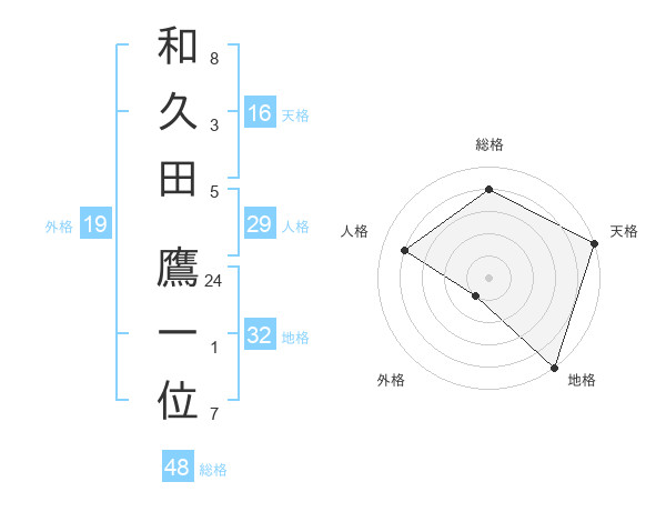 和久田 鷹一位さんの総格は48画の4点