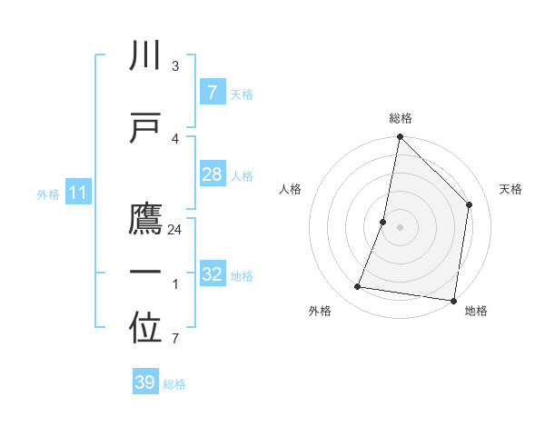 川戸 鷹一位さんを姓名の画数から五運を鑑定
