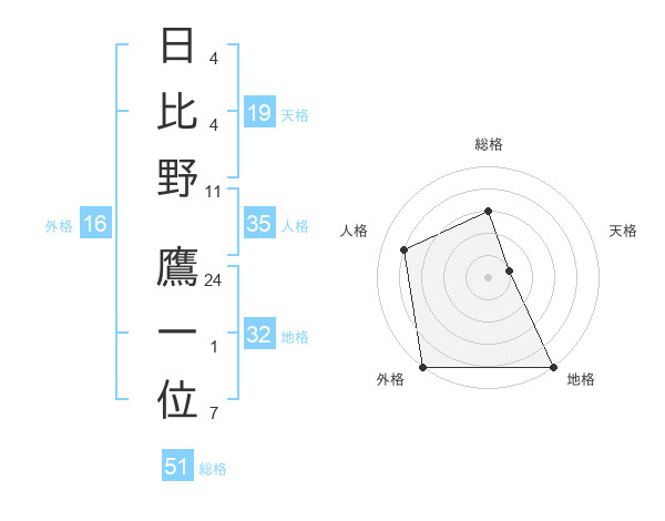 日比野 鷹一位さんを姓名の画数から五運を鑑定